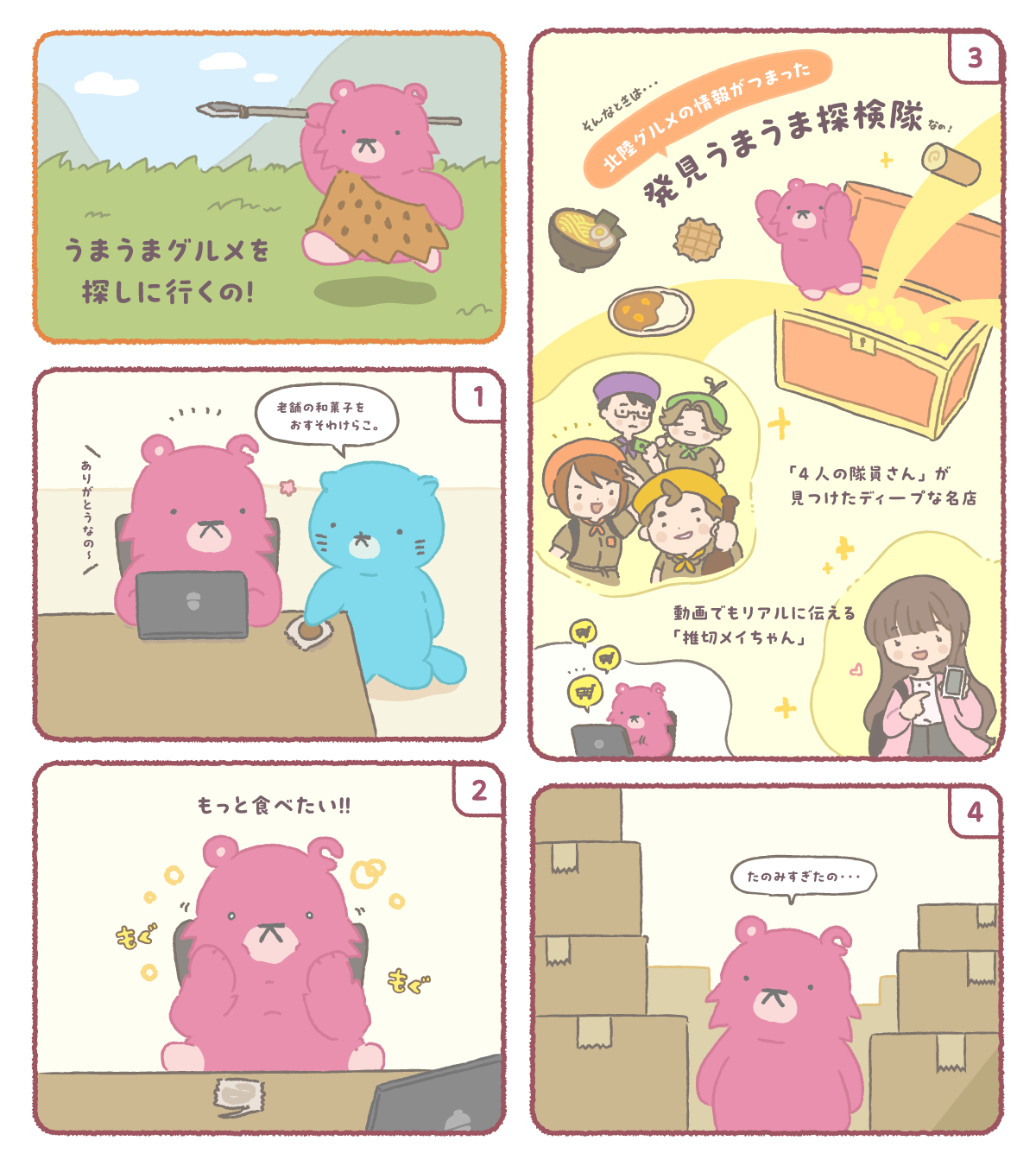 忘れられない、もっと食べたいグルメを探し求めるナレクマちゃんのお話。