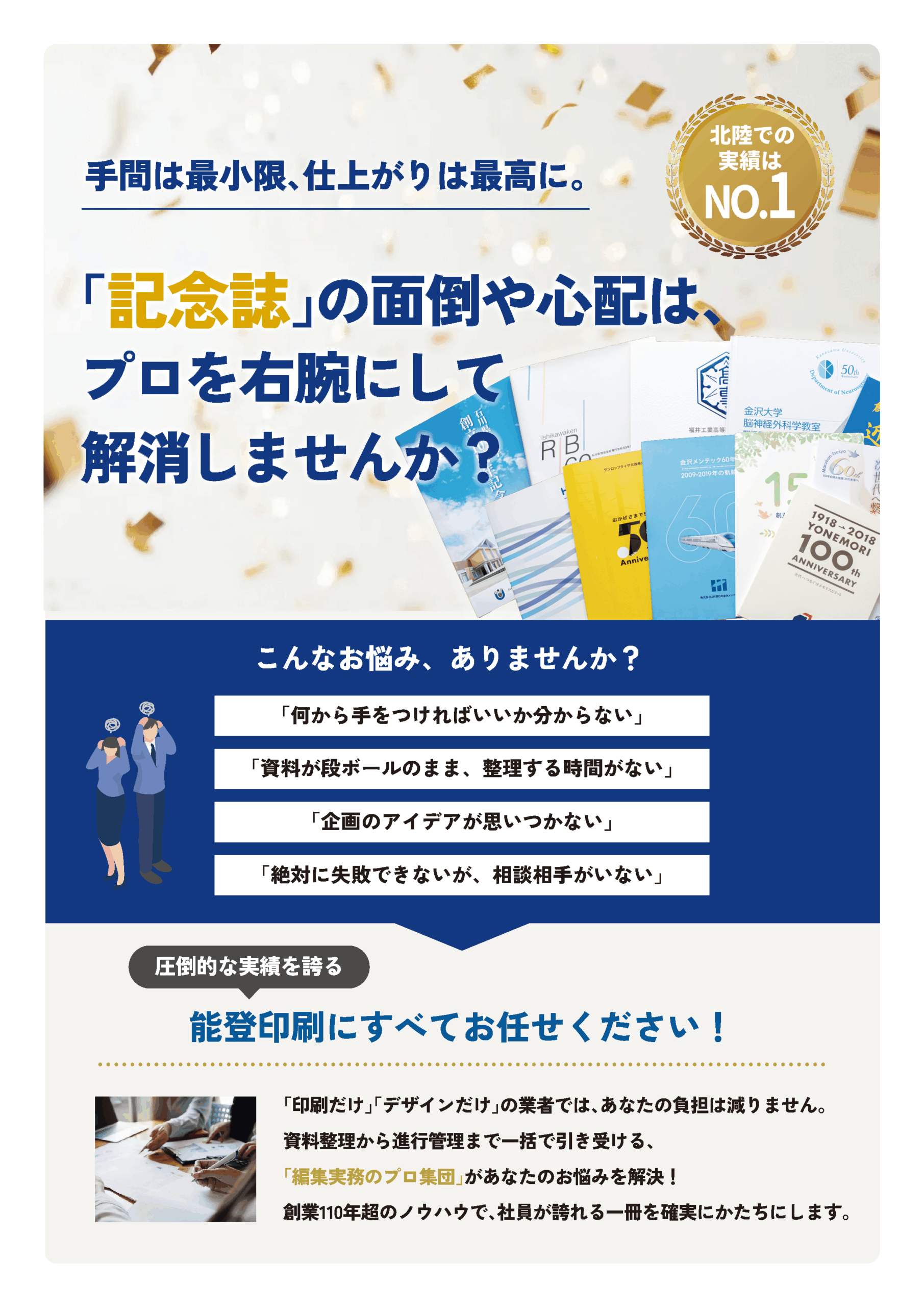 「記念誌」の面倒や心配は、 プロを右腕にして 解消しませんか?