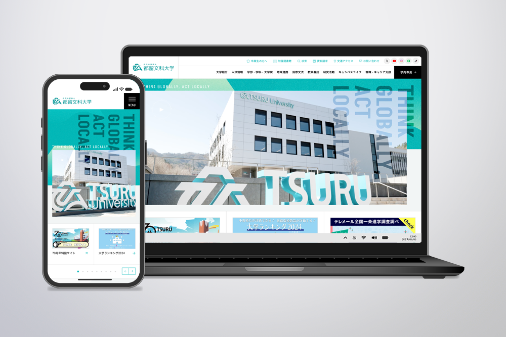 今回お手伝いさせていただいた都留文科大学 様は山梨県都留市に位置し、教職支援を特徴の一つとしている公立大学です。「初見の人でも感覚でわかりやすく情報に誘導し、そして大学の魅力を的確に伝えるものにしたい」というご要望にお応えし、ホームページをリニューアルさせていただきました。