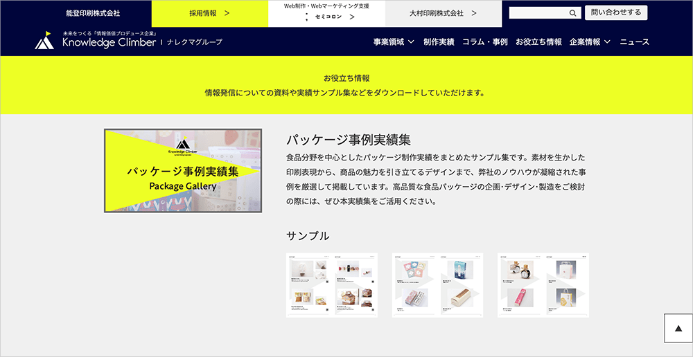 その「お役立ち情報」ページに新しい資料「パッケージ事例実績集」をアップいたしました。